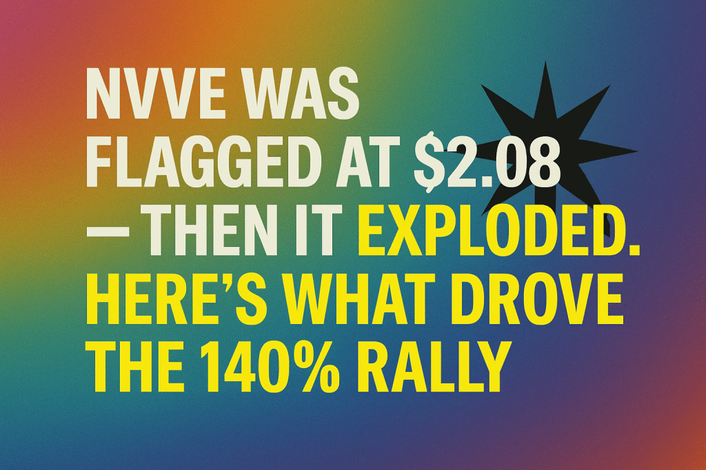 Pump Radar 7 months ago NVVE Was Flagged at $2.08 — Then It Exploded. Here’s What Drove the 140% Rally crypto stocksNuvve Holding CorpNVVENVVE stock alert By Ella Stratton